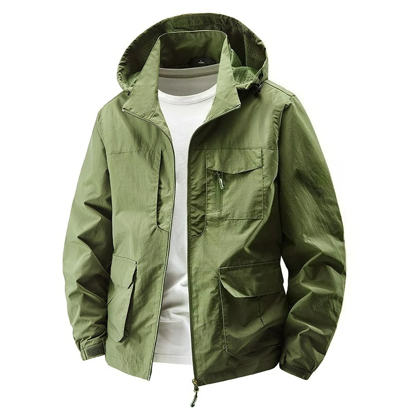 Design: Full-zip closure, adjustable hood, and vintage-style chest pocket.