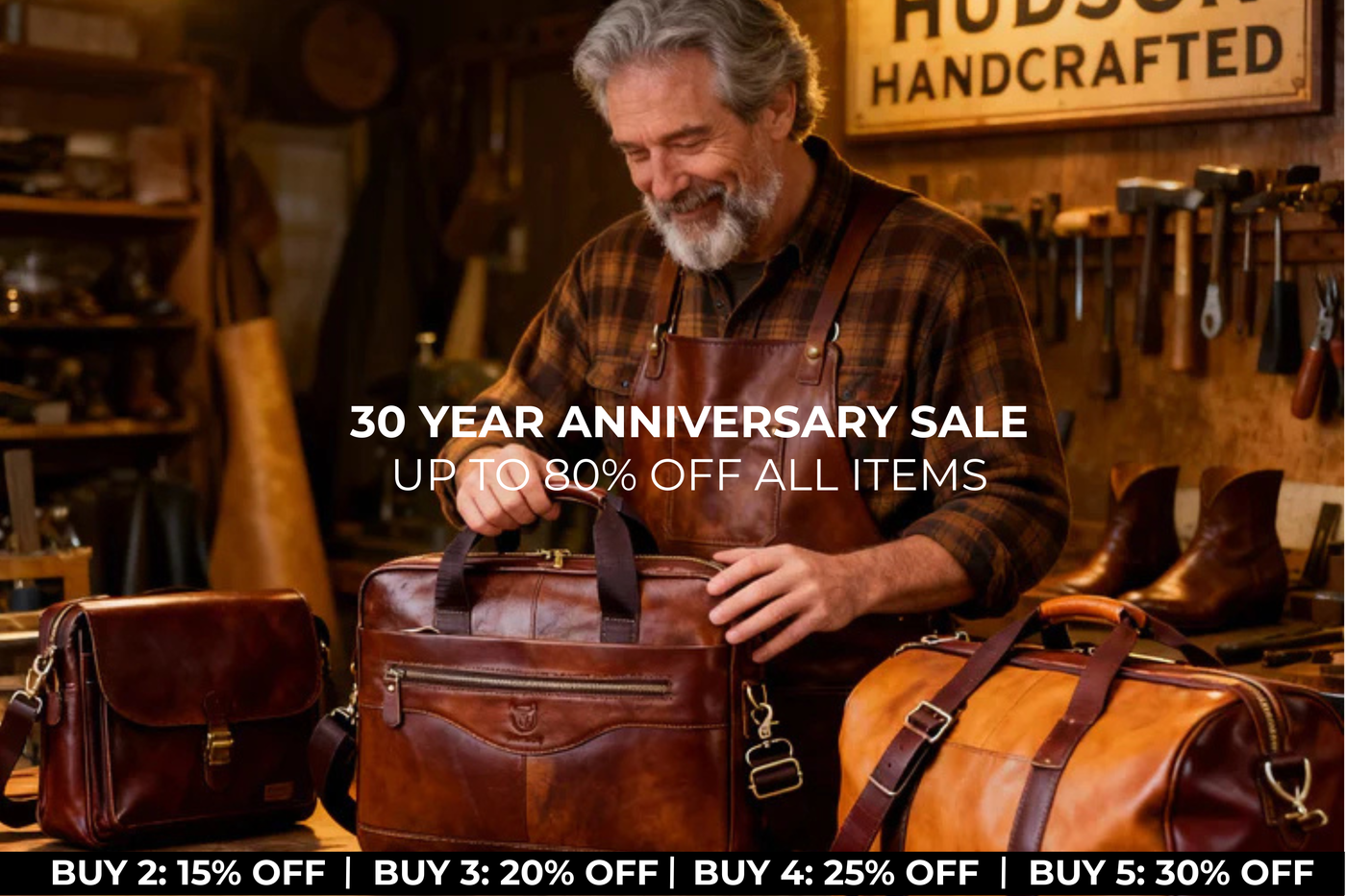 Handcrafted leather bags built the old way. Full-grain leather, Goodyear welt construction, made to last decades—not seasons.
