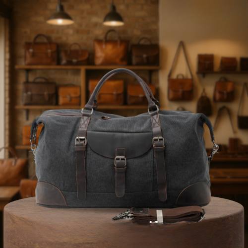 This vintage duffel bag blends style and durability, featuring genuine leather accents. Its rugged look is perfect for travel or weekend getaways. Designed to withstand the elements, it adds a touch of classic elegance to your trips.