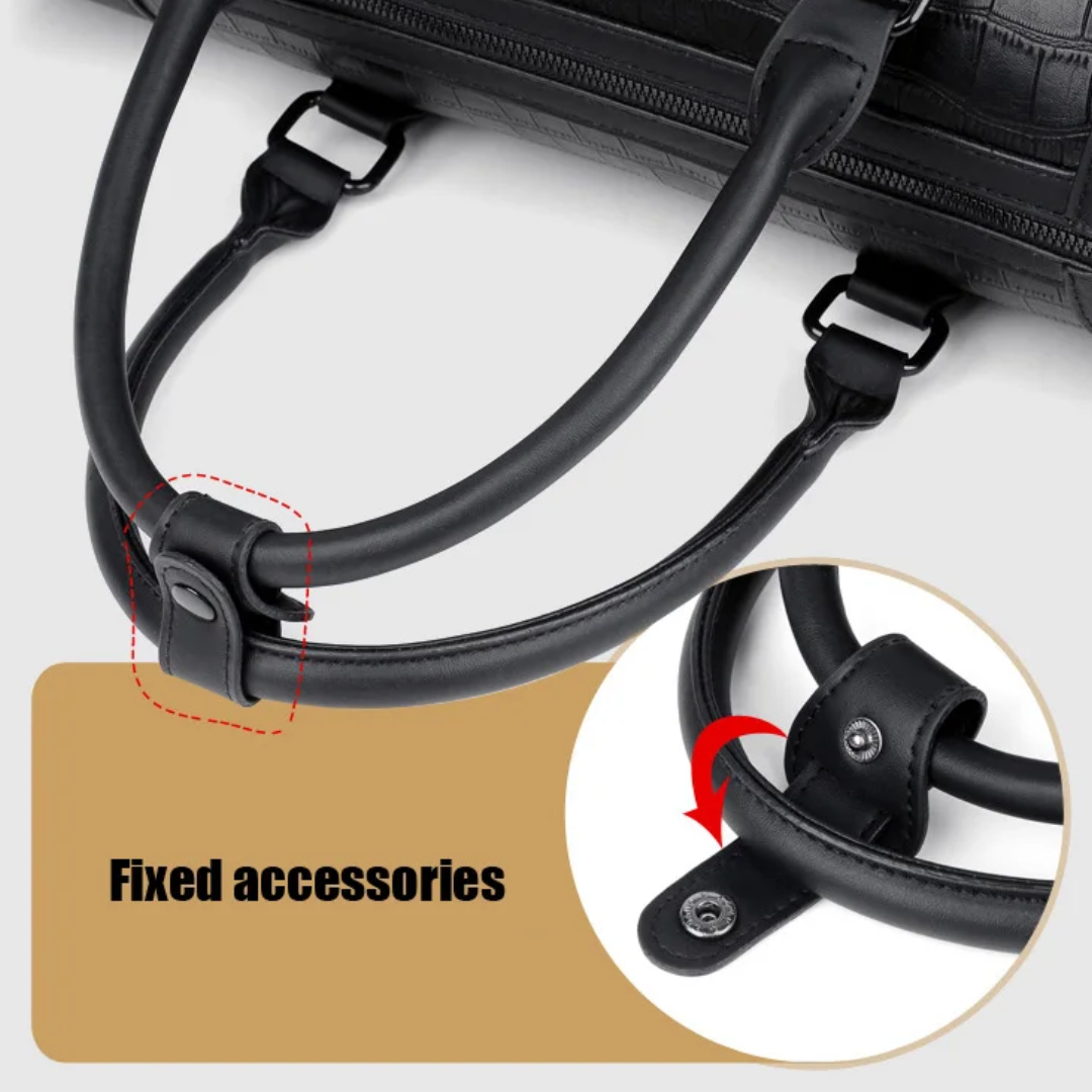 Inspired by timeless design and crocodile-texture, this duffle brings structured style to every journey. It balances bold elegance with functional travel-ready structure for classy getaways or everyday commutes.