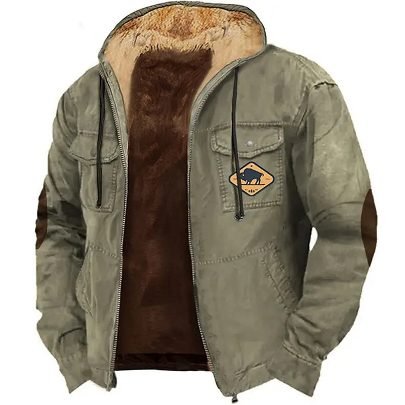 Design: Full-zip front with flap pockets and reinforced stitching